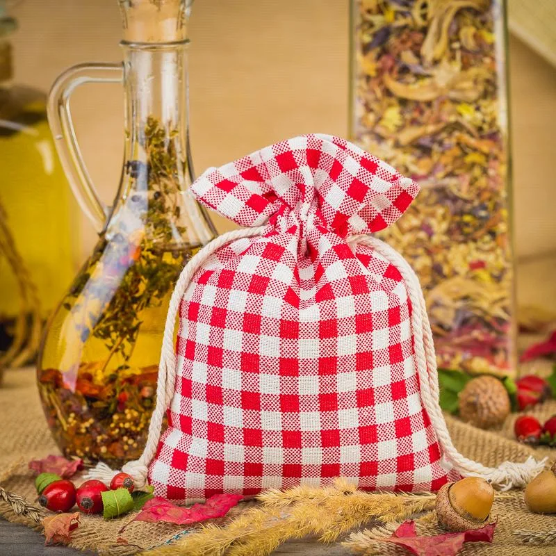 Vi har syet disse små poser af et luftigt bomuldsstof, der føles behageligt at røre ved, og som er tilsat syntetiske fibre. Stoffet ser meget smart ud - det gengiver tekstur og farve fra naturligt linned. Dens store fordel er dens holdbarhed, der ligger over gennemsnittet, og dens høje modstandsdygtighed over for slid og krølning. Disse genanvendelige wraps er et fremragende valg!