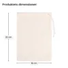 Her får du et sæt med 5 opbevaringsposer stof i størrelsen 16 x 22 cm, syet af 100% naturbomuld i en neutral beige farve. Poserne er uden kant og lukkes i den ene side med en enkel snor. De er økonomiske og bæredygtige løsninger til flere formål - perfekte for dem, der sætter pris på enkelhed, æstetik og en livsstil med fokus på genbrug og zero waste. Stærke, funktionelle og genanvendelige - velegnede både til hjemmet og til erhverv.
