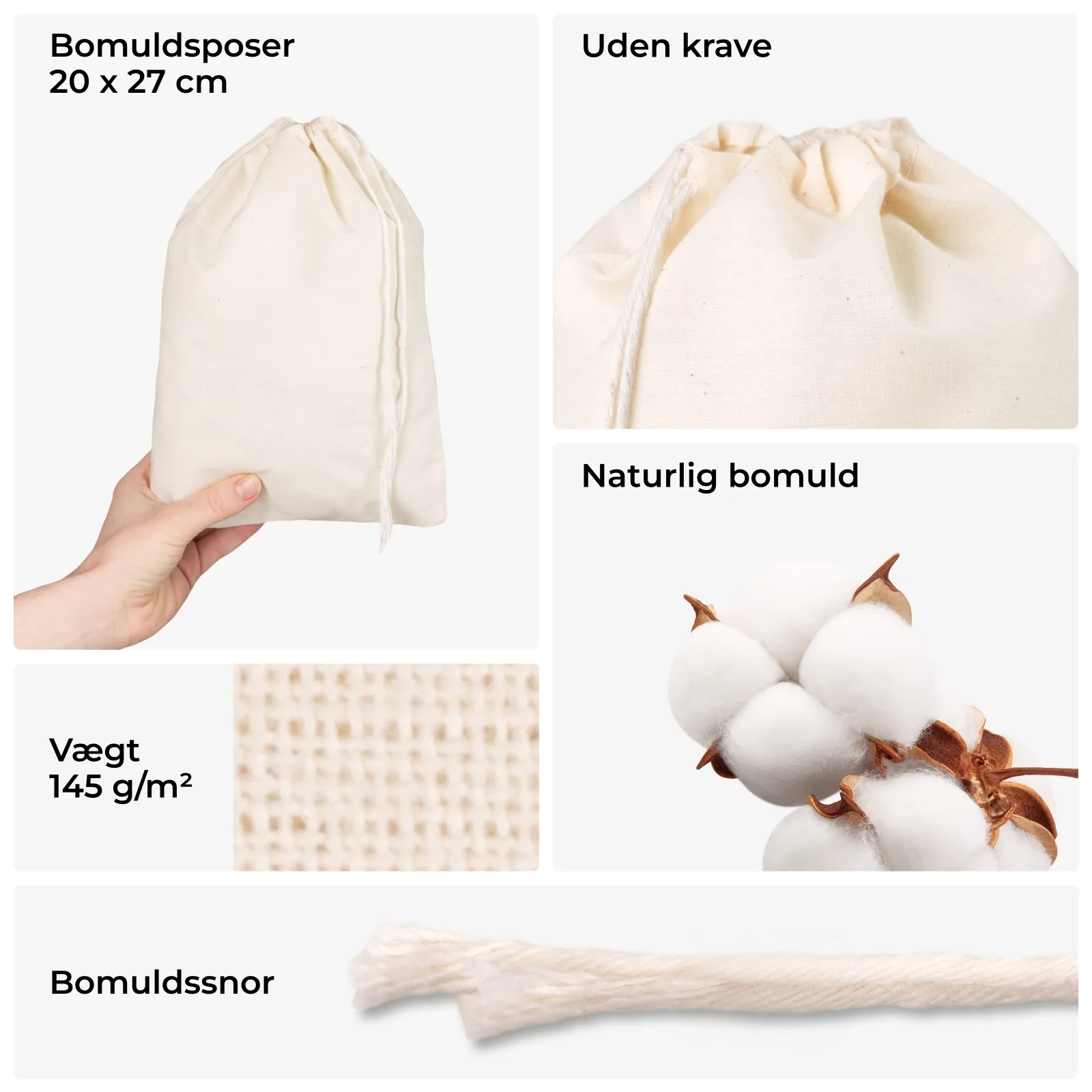 Bomuldsposer 20x27 cm - sæt med 5 stk.