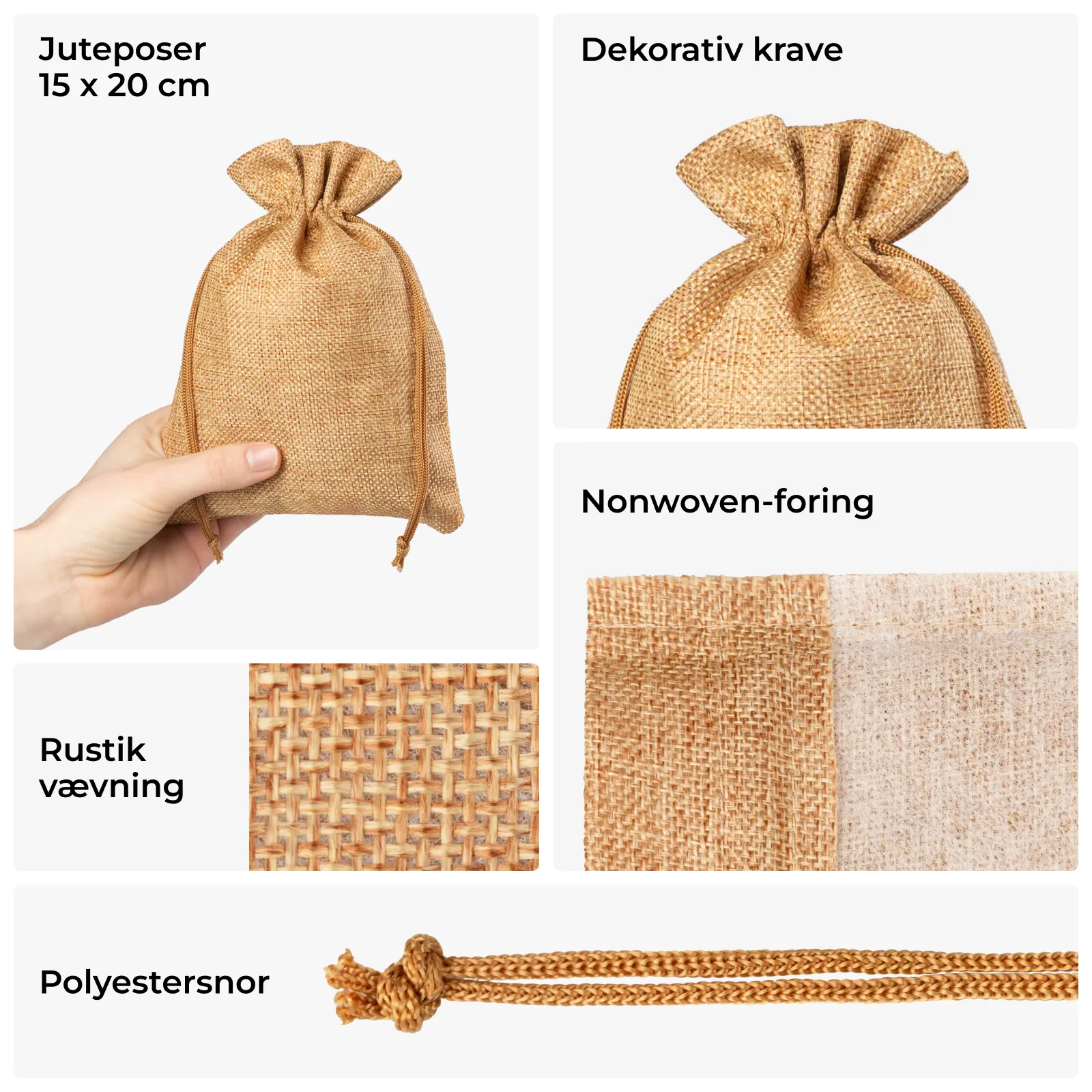 5 stk. Juteposer 15 x 20 cm - lys brun