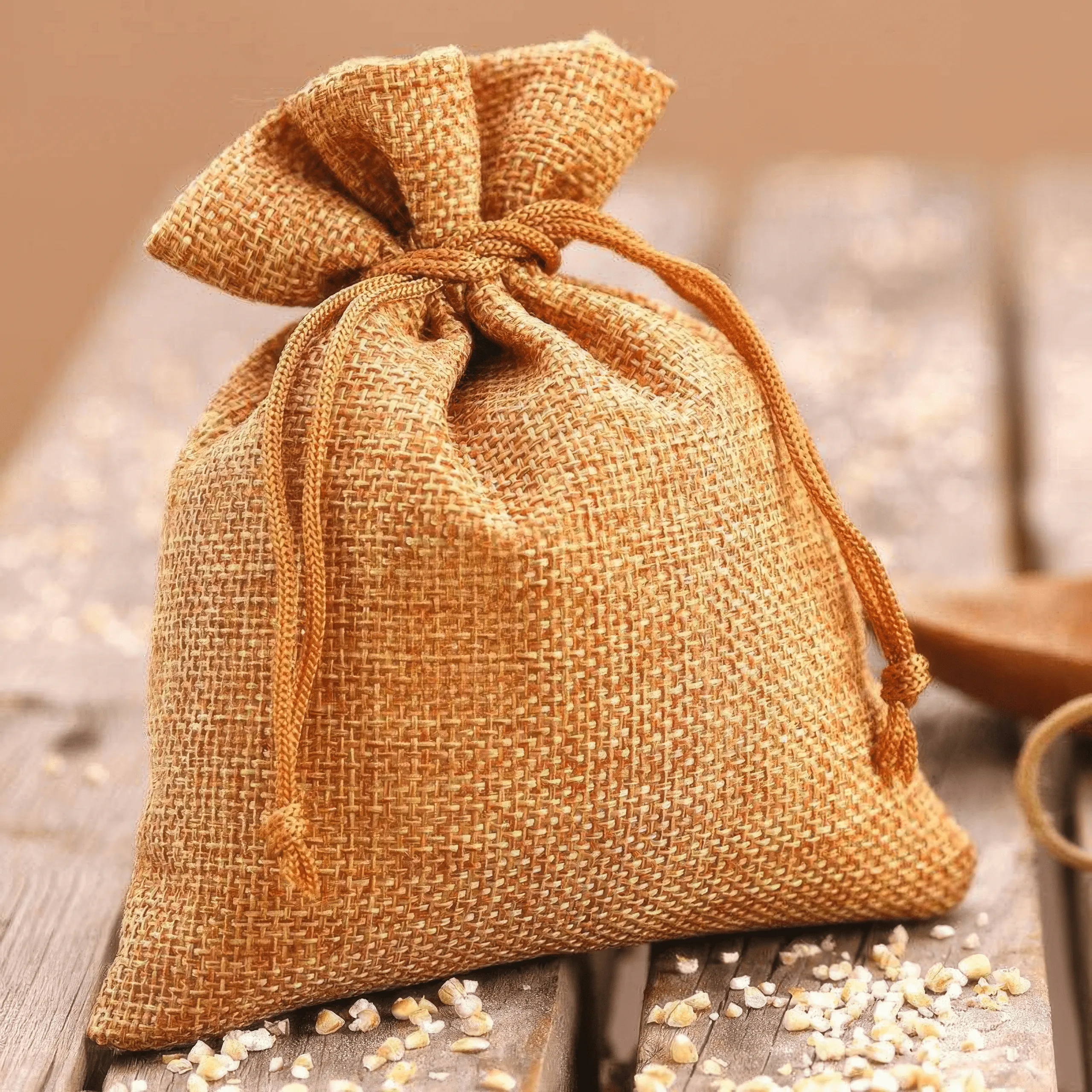 Juteposer passer godt sammen med naturlige dekorationer, økologisk mad, naturlige dufte og andre økologiske produkter, så de vil perfekt fremhæve vintage-agtige fester og arrangementer med en landlig atmosfære og en gammeldags fest.