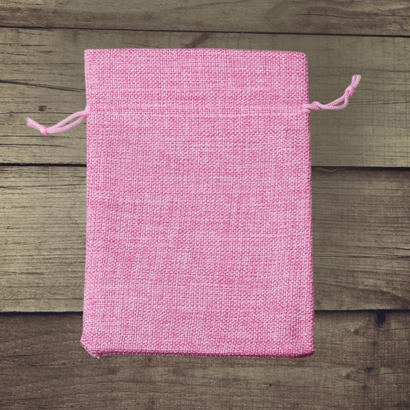 5 stk. juteposer i lyserød i størrelsen 15 cm x 20 cm.