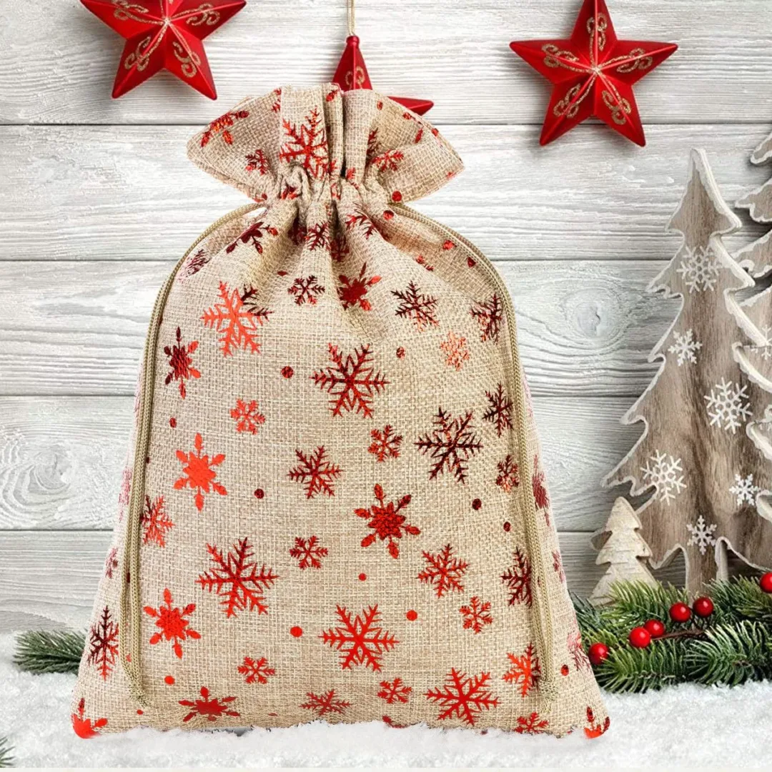 5 stk. Juteposer med tryk 15 x 20 cm - naturlig / stjerner