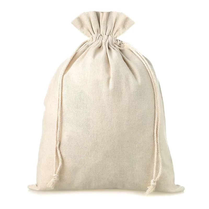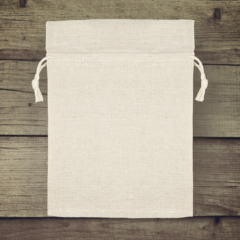 Vi har syet disse små poser af et luftigt bomuldsstof, der føles behageligt at røre ved, og som er tilsat syntetiske fibre. Stoffet ser meget smart ud - det gengiver tekstur og farve fra naturligt linned. Dens store fordel er dens holdbarhed, der ligger over gennemsnittet, og dens høje modstandsdygtighed over for slid og krølning. Disse genanvendelige wraps er et fremragende valg!