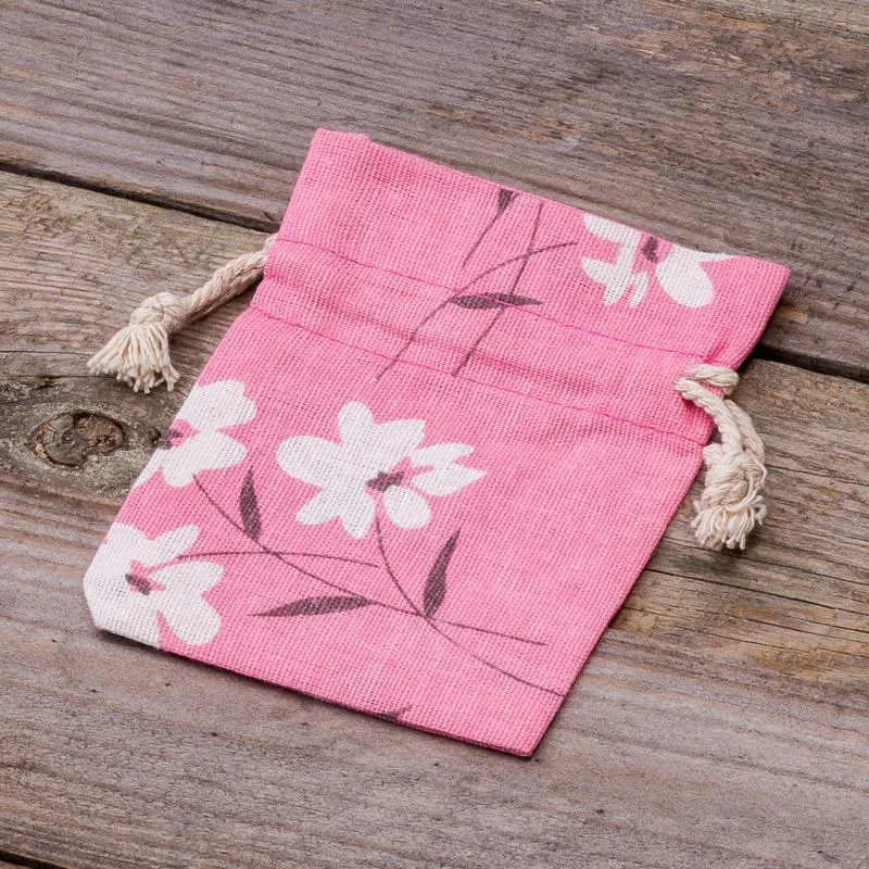 5 stk. Poser à la linned med trykt 10 x 13 cm - lyserøde blomster