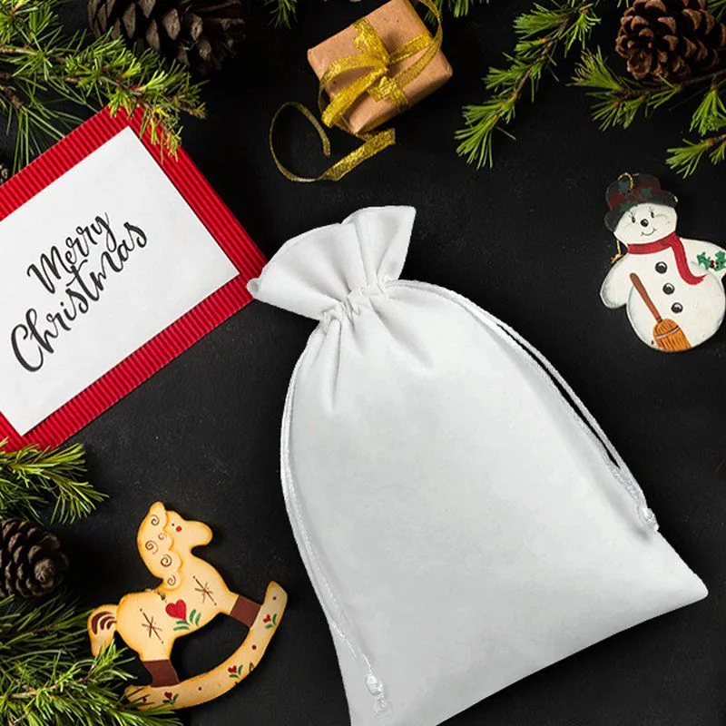 Veloursposer i et antal på 5 og i hvid. Sælges til en meget attraktiv pris og i størrelsen 22 x 30 cm.