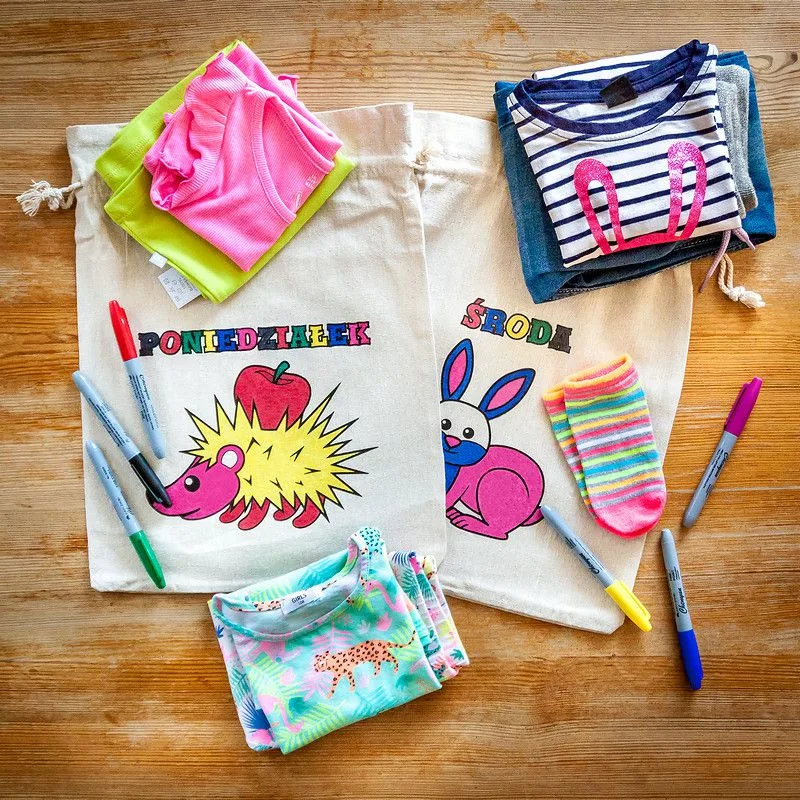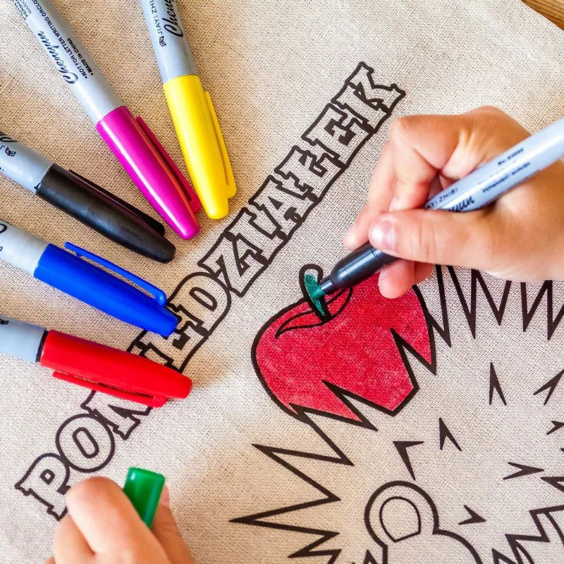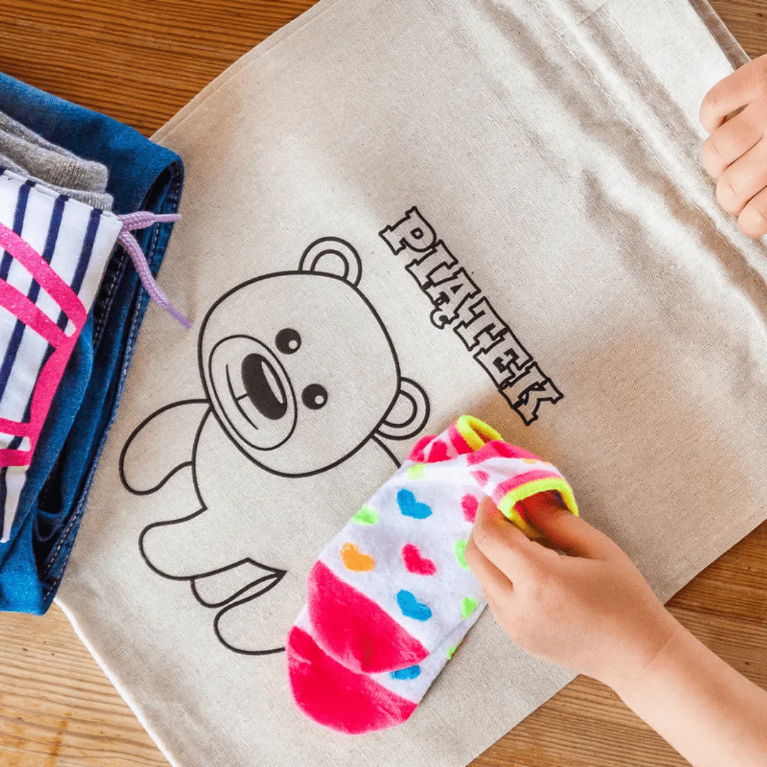 Sættet leveres også med farverige tuscher til at male på disse vidunderlige poser! Perfekt til kreativ leg med dine små.