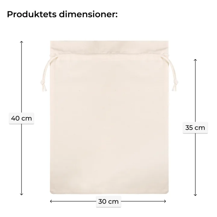 Bomuldspose 30 x 40 cm i naturfarve - 1 stofpose | 100% bomuld