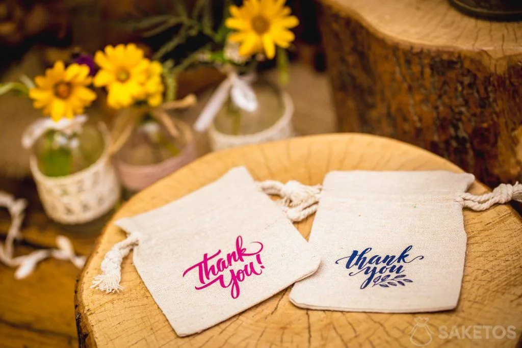 I Saketos Online Shop finder du smukke stofposer af jute, linned og bomuld. Disse indpakninger er uundværlige, når du arrangerer et rustikt bryllup og en rustik reception! Vi vil gerne minde dig om, at vi tilbyder muligheden for at personliggøre emballagen! Vi kan sætte et hvilket som helst tryk på de ønskede poser efter eget valg - f.eks. brudeparrets navne og datoen for ceremonien. Sådanne bryllupsposer vil helt sikkert blive et smukt minde i fremtiden!
