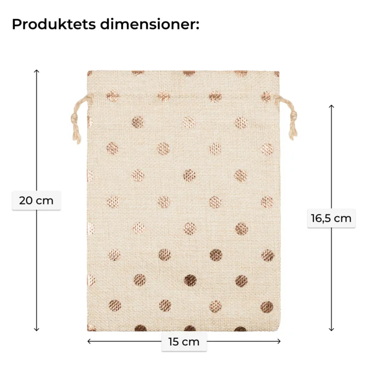 Gaveposer i jutelook 15x20 cm med guldfarvede prikker - rustikt og elegant gaveindpakning