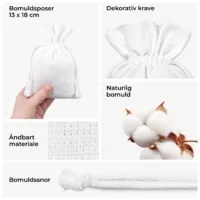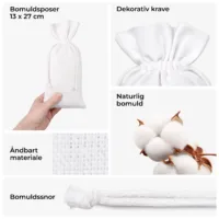 Bomuldsposer med organza 15x20 cm - 10 stk. - enkelhed med stor effekt