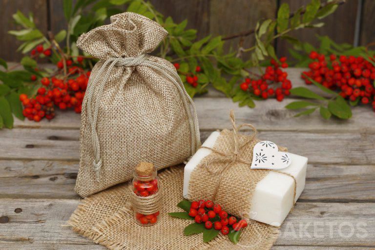 Lad os til sidst minde dig om, at når det gælder dekorativ gaveindpakning, er stofposer perfekte - læs mere om vores sæbeemballage.