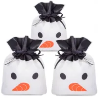 Sæt med 3 non-woven poser med julemotiv 22x31 cm med snemand - til miljøvenlig indpakning af julegaver og firmagaver