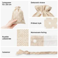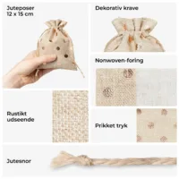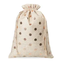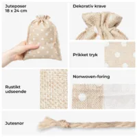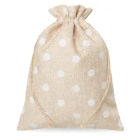 Sæt med 5 jutesække 18x24 cm - rustik gaveemballage med hvide prikker