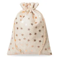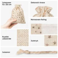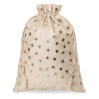 Sæt med 5 juteposer 15x20 cm - med gyldne stjerner til gaver og højtider