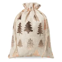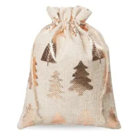Juteposer 15x20 cm med gyldne juletræer - elegant emballage med logo (5 stk.)