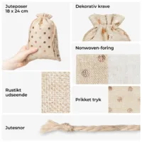 5 stk. Juteposer 18x24 cm - med gyldne prikker og dekorativ krave