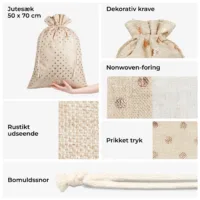 Stor jutesæk 50x70 cm med gyldne prikker - elegant gaveindpakning med wow-effekt