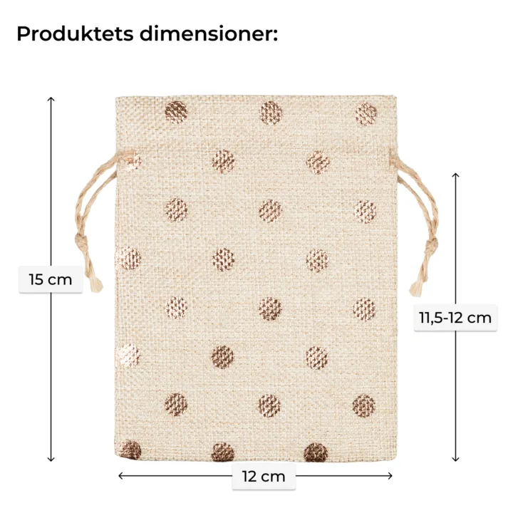 Juteposer med prikker - 12x15 cm, sæt med 10 - naturlig charme med et strejf af glimmer