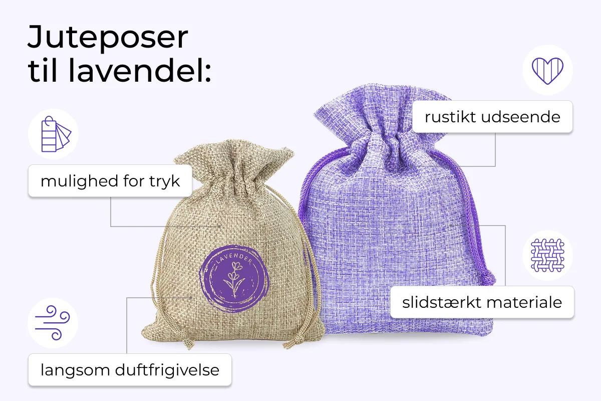 Derfor vælger flere og flere producenter genanvendelige juteposer til lavendel - holdbare, dekorative og perfekt til den rustikke stil i lavendelprodukter.
