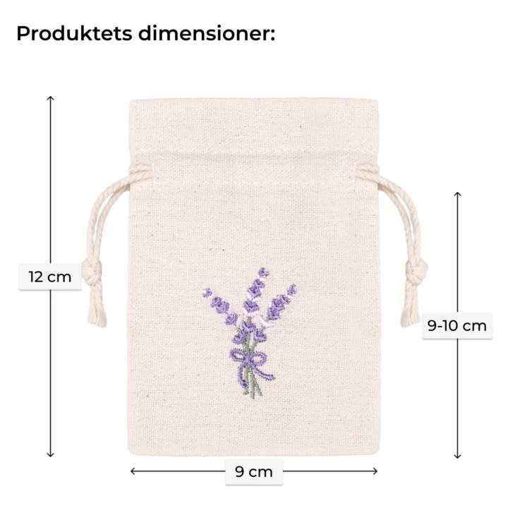 Lavendel poser i bomuld med broderi - 9x12 cm, 10-pak - naturlig duft og nordisk elegance