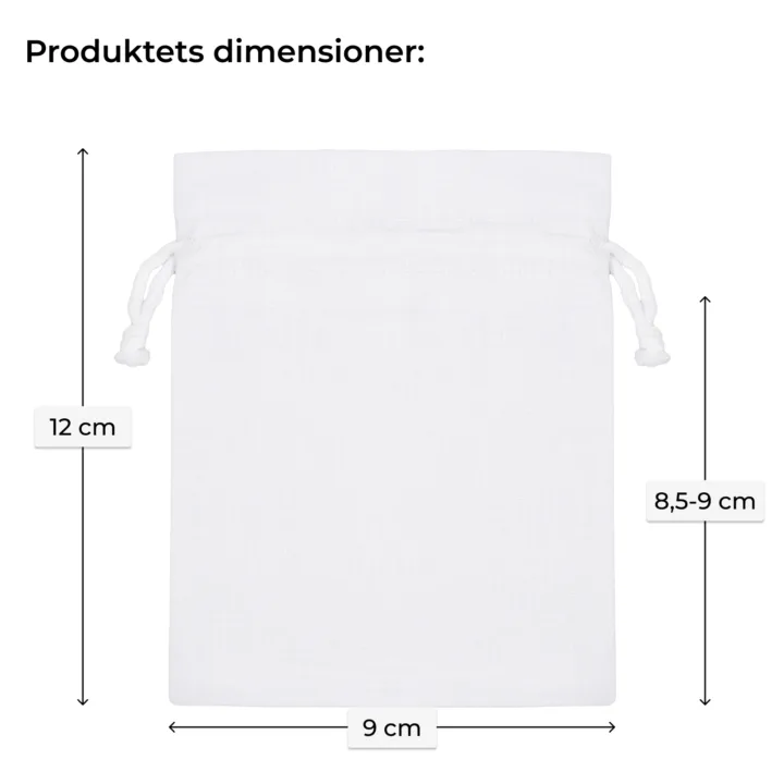 Små, men multifunktionelle poser af elegant bomuld i hvidt i størrelsen 9 x 12 cm . Pakken, der præsenteres her, består af 10 stk., så et engangsindkøb af de praktiske poser rækker i lang tid.