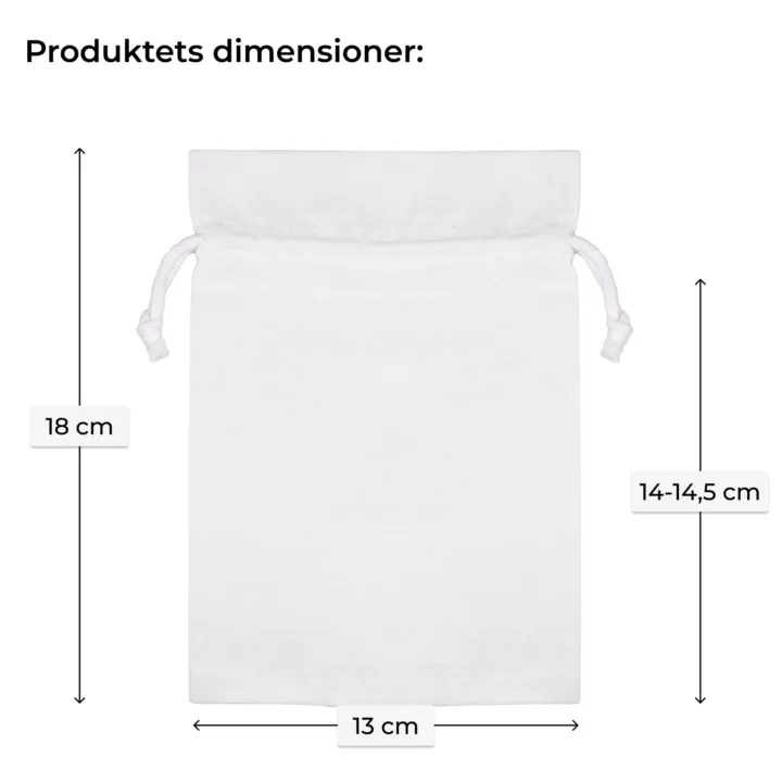 Her kan du købe små, men meget rummelige bomuldsposer med snørebånd . Lad dig overraske af deres holdbarhed og mange anvendelsesmuligheder. Disse hvide bomuldspakker er perfekte til brug som bl.a. praktiske organisatorer eller gaveposer. Ved du allerede, hvad du vil pakke i dine poser?