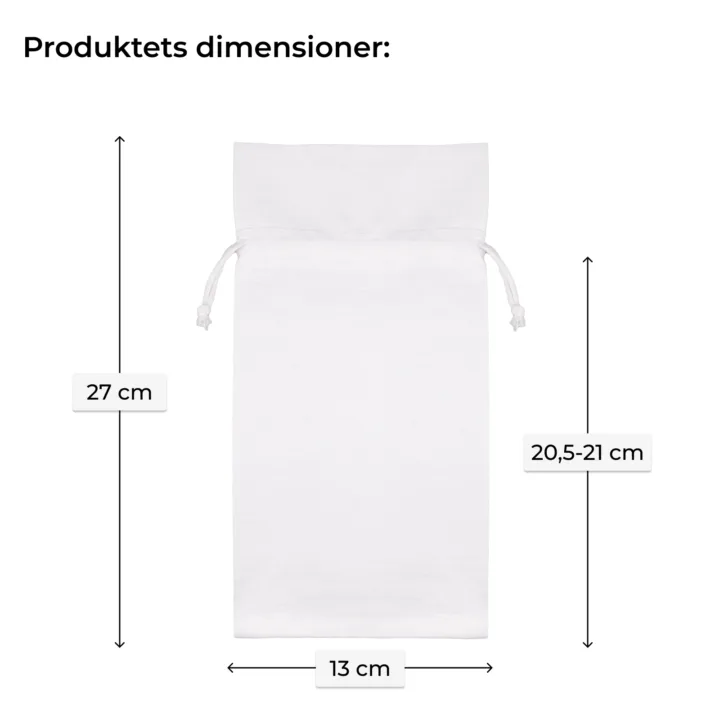 Små, men universelt anvendelige poser af elegant bomuld i hvid farve i størrelsen 13 x 27 cm . Pakken, der præsenteres her, består af 10 stk., så et engangsindkøb af de praktiske poser rækker i lang tid.