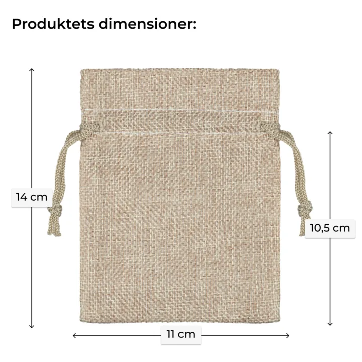 Små, meget alsidige poser af elegant jute i naturlig farve i størrelsen 11 cm x 14 cm. Pakken, der præsenteres her, består af 10 stk., så et enkelt køb kan holde i lang tid.
