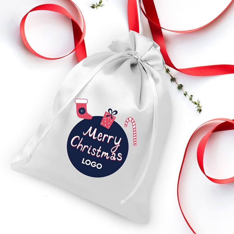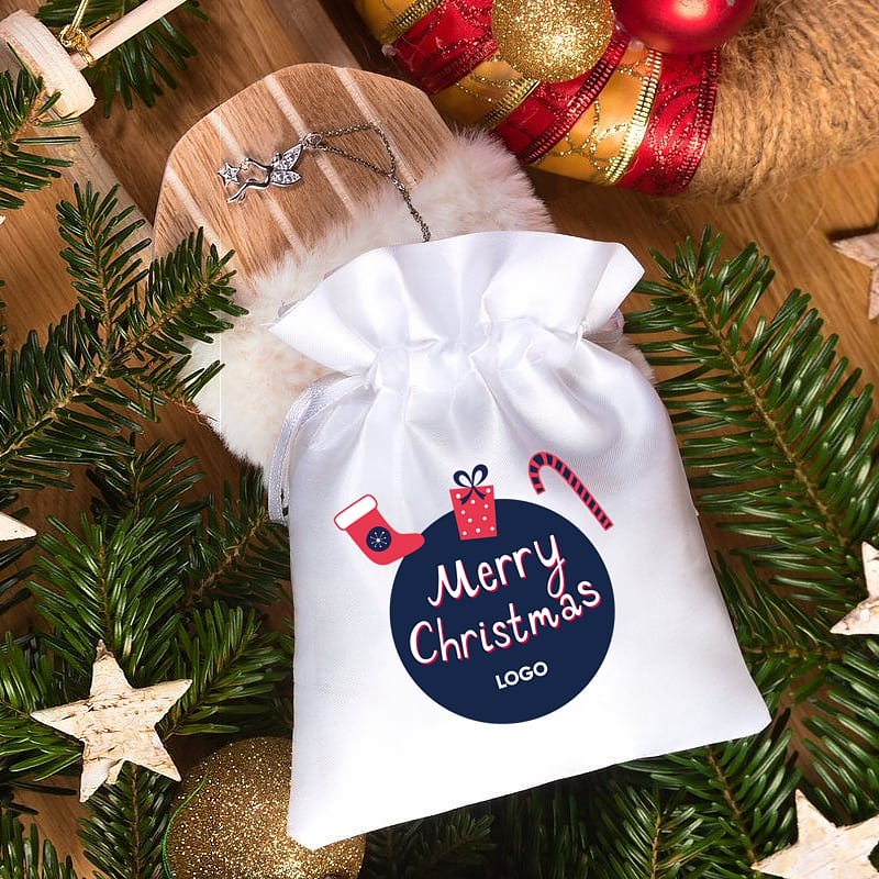 Vælg størrelse, farve eller endda tryk på båndet. Alt er muligt! Juleposer med dit firmalogo tilføjer et professionelt og elegant touch.