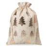 Sæt med 5 juleposer i jute 18x24 cm - rustikke gaveposer med tryk af juletræer
