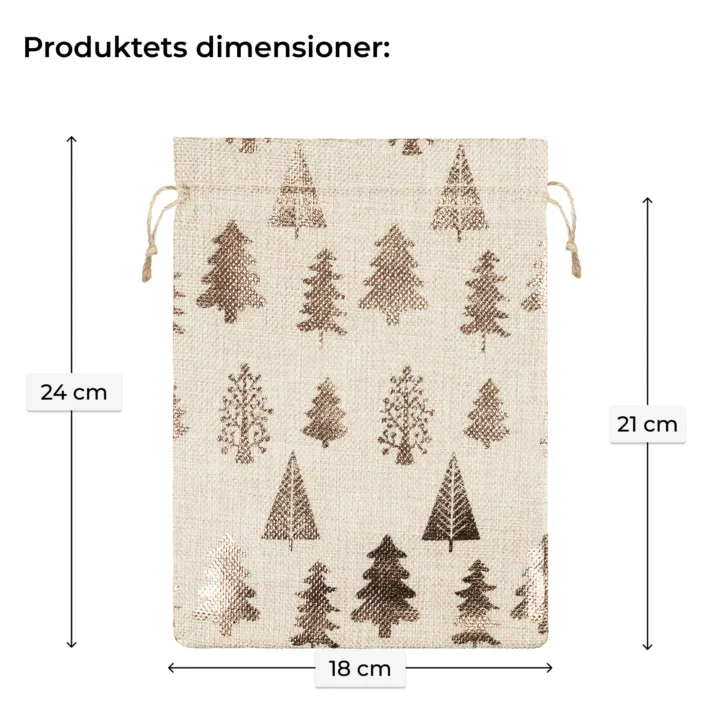 Vil du pakke dine gaver smukt og bæredygtigt? Vores jutesække med juletræsmotiv er skabt til både privat og erhverv. De kombinerer rustik charme med julens varme og giver dine produkter eller gaver et eksklusivt, naturligt look.
