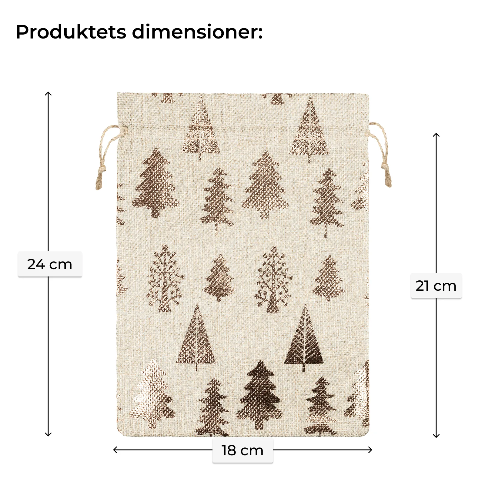Sæt med 5 juleposer i jute 18x24 cm - rustikke gaveposer med tryk af juletræer