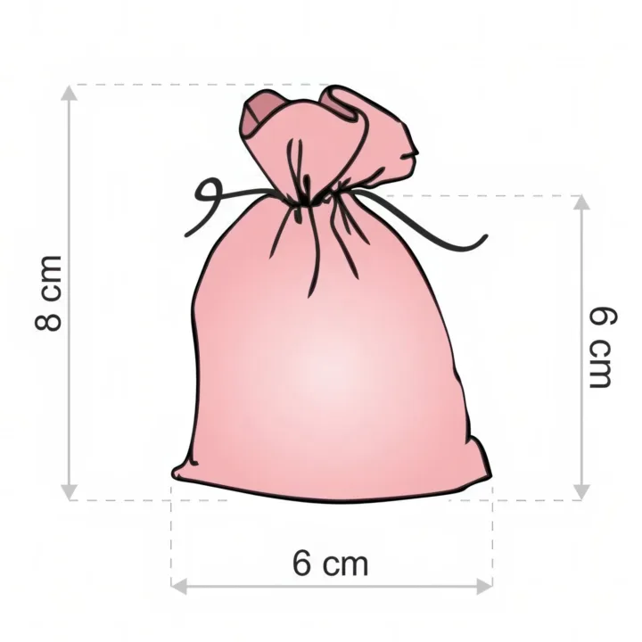 Pakke med 10 dekorative satinposer i bordeauxrød, der måler 6 cm x 8 cm