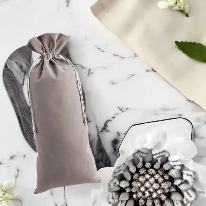 Vi anbefaler vores velourposer som en usædvanlig måde at pakke en gave ind på og som dekorativ emballage til hverdagsgenstande.